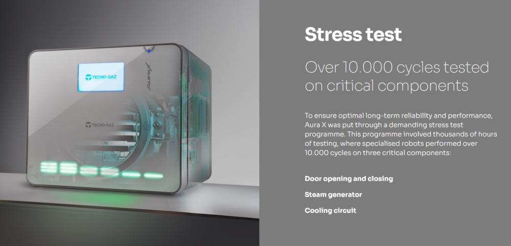 Pentru a asigura fiabilitatea si performanta pe termen lung, Aura X a fost supus unui program riguros de testare. Mii de ore de teste, realizate de roboti specializati, au verificat peste 10.000 de cicluri pe: