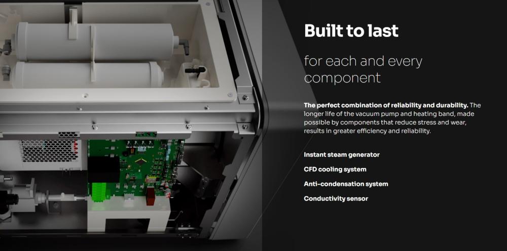 Combinatia perfecta de fiabilitate si rezistenta. Durata mai lunga de viata a pompei de vid si a rezistentei de incalzire este posibila datorita componentelor care reduc uzura si solicitarea, ceea ce duce la o eficienta si o fiabilitate mai mare.